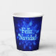 Ein Schwarm blauen Fraktals Schneeflocken. Der spanische Text "Feliz Navidad" erscheint in blau-weiß. Fügen Sie auf der Rückseite Ihren eigenen zusätzlichen Text hinzu.