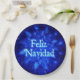 Ein Schwarm blauen Fraktals Schneeflocken. Der spanische Text "Feliz Navidad" erscheint in blau-weiß.