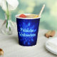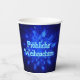 Ein Schwarm blauen Fraktals Schneeflocken. Deutscher Text mit dem Titel "Froliche Weihnachten" erscheint in leuchtendem Blau und Weiß. Passen Sie Ihren eigenen zusätzlichen Text auf der Rückseite an.
