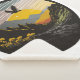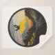 A sticker with an eagle flying over a mountain, in the style of contemporary landscape, golden light, black mountain college, fisheye lens, arts and crafts movement, mid-century illustration
