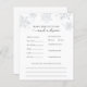 Babyduschberatung und Vorhersagekarte mit Aquarellsilber-Schneeflocken. Eine unterhaltsame Art, mit den Gästen während der Babydusche zu interagieren. Entspricht der Glittery Snowflake Collection im Adore Paper Co Zazzle Shop.