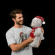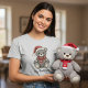 "This highly detailed and charming illustration features a teddy bear wearing a festive Santa hat and a red, snowflake-patterned scarf. The bear's fur is uniquely stylized with intricate white and black patterns, giving it an ornamental, vintage look. This design is perfect for Christmas apparel, holiday cards, tree ornaments, cozy blankets, or any product celebrating the timeless joy of a classic teddy bear during the winter holidays."
