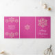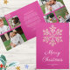 Personalisieren Sie diese 6 Foto dreifach gefärbten Weihnachtskarten, die in tiefgründigem Himbeerrosa mit Imitaten Glitzer pinkfarbene Schneeflocken entworfen wurden und erstellen Sie Ihre eigenen luxuriösen Urlaubskarten für Familie und Freunde. Auf der Vorderseite jeder Karte befindet sich oben eine Single-Rosa-Schneeflocke, Platz für Ihren Namen und das Jahr am Ende und Frohe Weihnachten in einem hübschen Schriftart mit weißer Schrift dazwischen. Entfalten Sie die benutzerdefinierte Karte, um die Innenseite der Abdeckung, mit mehr rosa Schneeflocken oben und unten, wo Sie einen kurzen Urlaub Gruß in Weiß schreiben können. Wenn diese dreifach gefalteten Weihnachtskarten vollständig entfaltet werden, zeigen sie 6 Fotovorlagen auf, drei auf jeder Seite, sodass Sie Ihre wertvollen Fotos aus dem vergangenen Jahr ganz einfach hinzufügen können. Auf dem Innenbereich des Pools können Sie auf Wunsch eine kurze Weihnachtsbriefnachricht auf dem berry-rosa Hintergrund hinzufügen. Der Trend für Weihnachten ist pink, reich dunkel beerrosa, und diese eleganten Imitate Glitzer Schneeflocken Ferienkarten liefern das Rosa im Stil.