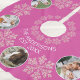Der weihnachtliche Trend ist rosa und dieser personalisierte Foto-Rock in tiefberry pink mit Imitaten Glitzer Schneeflocken und bis zu 5 Ihrer Lieblings-Fotos wird sicher sein, eine Aussage unter dem Baum zu machen. Fügen Sie Ihre Fotos hinzu und beobachten Sie, wie sie sich in Rundbilder verwandeln, die jeweils in einem weißen Rahmen gerahmt sind. Sie können auch zwei Textzeilen in einem weißen Schriftart hinzufügen, um diesen Weihnachtsbaumrock noch individueller zu gestalten. Set in kreisförmigem Design um die äußere Kante des Rocks, ein Single rosa Imitate Glitzer Schneeflocke ist in jedem Foto. Ein Kreis kleinerer rosa Schneeflocken um das Rumpelloch schließt diesen speziellen Weihnachtsbaumrock ab. Ein personalisierter Urlaubskirt ist ein lustiger und festlicher Weg, um Fotos von Haustieren, Kindern oder Fotos der alten Familie zu zeigen. Dieses dunkelrosa Himbeere und die Imitate glitzern Schneeflocken-Design verleiht dem niedlichen Faktor ein wenig Eleganz.