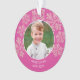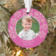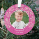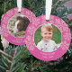 Mit diesen niedlichen zweiseitigen Weihnachtsschmuckstücken aus 2 Fotos in einem tiefen Beerenrosa mit Imitaten Glitzer pinkfarbene Schneeflocken für ein wenig Klingeln. Diese dunkelrosa runden Acrylschmuck sind so konzipiert, dass sie einfach zu personalisieren sind, indem Sie Ihre Fotos und Texte mit den Vorlagen hinzufügen. Lade dein Foto in das Frontsornament-Design hoch und beobachte, wie es sich in ein rundes Bild mit einem dünnen weißen Rahmen und einer Kaskade aus rosa Imitaten verwandelt, das Schneeflocken hinter sich lässt. Zwei kurvige Textzeilen am unteren Rand in einem einfachen weißen Text ermöglichen es Ihnen, Ihr Foto leicht zu tippen, indem Sie einen Namen und ein Jahr oder andere kurze Formulierung hinzufügen. Die Rückseite jedes personalisierten Weihnachtsschmucks ist die gleiche wie die Vorderseite, aber mit verschiedenen Vorlagen, sodass Sie wählen können, das gleiche Foto und Titel oder ein zweites mit anderen Text, wenn Sie möchten. Diese einzigartigen Ornamente mit ihren Fotos und dem zusätzlichen Spaß an Himbeerrosa und Imitat Glitzer Schneeflocken sind perfekt für Ihren Baum und auch für Freunde und Familie.