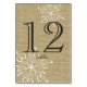 Hübsche Winterschneeflocke und rustikales Landhausbild mit Einstiegskarte in die Tischnummer.