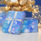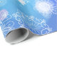 Hübsches Verpackungspapier mit mattiertem Snowflake Fantasy-Design in Blau, lila und Weiß.