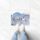 Im Inneren einer Schneekugel liegt eine Winterlandschaft mit einer Hütte, die von nackten Ahorn- und Kirschbäumen überschattet wird. Schneeflocken auf dem Rasen, heilige Sträucher mit leuchtend roten Beeren flankieren die Tür und Schneeflocken stürzen durch die gefrorene Luft. Neben dem Globus sieht ein kleines Jägerchen in der Miniaturszene merkwürdig aus.
