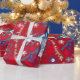 Schneeflocken in Rot, Blau und Weiß. Mögen Sie gemütliche und warme Ferien verbringen! Prost!