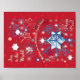 Schneeflocken in Rot, Blau und Weiß. Mögen Sie gemütliche und warme Ferien verbringen! Prost!