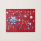 Schneeflocken in Rot, Blau und Weiß. Mögen Sie gemütliche und warme Ferien verbringen! Prost!