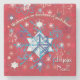 Schneeflocken in Rot, Blau und Weiß. Mögen Sie gemütliche und warme Ferien verbringen! Prost!