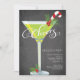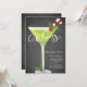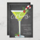 Spaß mit modernen CHEERS! Retro Holiday Cocktail Party Einladung mit festlich grünem Martini-Glas mit holzigen auf dem Set auf einem beliebten und trendigen schwarzen Chalkboard Hintergrund. Ideal für ein Silvester Party, Feiertag, Weihnachten Party, Party, Trim the tree Party oder jeden besonderen Winter kommen Sie zusammen Party.