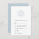 Eis blauer Schneeflocken Winter Hochzeit RSVP Karte mit Essensmöglichkeiten. Detailliertes, eisblaues Schneeflockendesign mit eleganter Kalligraphie. Passen Sie Ihre Namen und Ihre Hochzeitsinformationen in dunkler Seekalligraphie und Serifenschrift an. Entworfen, um unsere Ice Blue Snowflake Winter Wedding Collection zu passen.