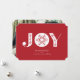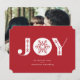 Diese schlichte und dennoch elegante Urlaubskarte bietet JOY mit einer einzigartigen Schneeflocke im Zentrum. Passen Sie es an, um die Hintergrundfarbe zu ändern! Fügen Sie ein Foto der Familie auf die Rückseite oder löschen Sie das Weihnachtsbild und fügen Sie Ihren eigenen individuellen Urlaubssegment hinzu.