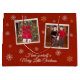 Super niedliche, große Weihnachtsgeschenktasche hat ein texturiertes rotes Hintergrundpapier und 2 Rahmen für einige Ihrer Lieblings-Fotos. Niedliche weiße Schneeflocken sind verstreut. Der untere Punkt sagt: "Haben Sie sich ein frohe kleine Weihnachten, die geändert werden können, um alles, was Sie gerne für Ihre Familie personalisieren. Auf der Rückseite der Tasche steht: "Mit Liebe von unserer Familie zu deinen" (die auch gewechselt werden kann) und ein Platz für deine Namen. Andere Größen sind im Shop erhältlich.