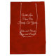Super niedliche, mittelgroße Weihnachtsgeschenktasche mit Textur, rotem Hintergrundpapier und 2 Rahmen für einige Ihrer Lieblings-Fotos. Niedliche weiße Schneeflocken sind verstreut. Der untere Punkt sagt: "Haben Sie sich ein frohe kleine Weihnachten, die geändert werden können, um alles, was Sie gerne für Ihre Familie personalisieren. Auf der Rückseite der Tasche steht: "Mit Liebe von unserer Familie zu deinen" (die auch gewechselt werden kann) und ein Platz für deine Namen. Andere Größen sind erhältlich.