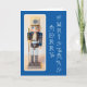 Ein funkelnder Nusscracker mit einer Schneeflocke auf seinem Furry macht eine charmante Weihnachtskarte.