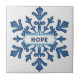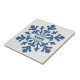 Snowflake pattern blue & white holiday custom name ceramic tile. You can edit the text in the center, change the font, change the color, size, etc. Gift these tiles as custom name coasters for each family member, for friends or teams, use them for home accents on your bookshelves, in your living rooms and bedrooms, or as mosaic wall art with other tiles. Or leave the central space empty, and use as decorative backsplash ceramic tiles.