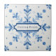 Snowflake pattern blue & white holiday custom name ceramic tile. You can edit the text in the center, change the font, change the color, size, etc. Gift these tiles as custom name coasters for each family member, for friends or teams, use them for home accents on your bookshelves, in your living rooms and bedrooms, or as mosaic wall art with other tiles. Or leave the central space empty, and use as decorative backsplash ceramic tiles.
