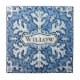 Snowflake pattern blue & white holiday custom name ceramic tile. You can edit the text in the center, change the font, change the color, size, etc. Gift these tiles as custom name coasters for each family member, for friends or teams, use them for home accents on your bookshelves, in your living rooms and bedrooms, or as mosaic wall art with other tiles. Or leave the central space empty, and use as decorative backsplash ceramic tiles.