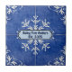 Snowflake pattern blue & white holiday custom name ceramic tile. You can edit the text in the center, change the font, change the color, size, etc. Gift these tiles as custom name coasters for each family member, for friends or teams, use them for home accents on your bookshelves, in your living rooms and bedrooms, or as mosaic wall art with other tiles. Or leave the central space empty, and use as decorative backsplash ceramic tiles.