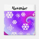 Legen Sie eine auf eine Serviette an jeder Stelle! Passen Sie den Namen an, wie Sie wollen! Ein hübscher und lila Themenhintergrund mit blendend weißen Schneeflocken.