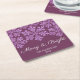 Personalisieren Sie diese eleganten dunklen Pflaumen lila und lila Imitats Glitzer Schneeflocke Papier Untersetzer für Ihre nächste Feier und fügen Sie eine maßgeschneiderte Touch zu Ihrem Weihnachtsdekor. Eine Kaskade von Imitaten funkelt lila Schneeflocken an der Spitze dieser personalisierten quadratischen Papier-Untersetzer führen zu MERRY & BRIGHT in einem hübschen Schriftart mit weißer Schrift. (Sie können zu frohen Weihnachten oder glücklichen Feiertagen, wenn Sie wollen) Unten ist dies ein einfacherer moderner Schriftart auch in weiß, wo Sie Ihren Namen und das Jahr oder den Namen Ihres Weihnachtsgeschehens hinzufügen können. Individuell gestaltete Weihnachtsabende-Untersetzer für Ihre Urlaubserlebnisse sind eine schicke Art, Ihre Gäste willkommen zu heißen und dabei Ihre Oberflächen sauber behalten. Diese lila und schneeflocken Untersetzer werden Ihrem Feiertag ein wenig Schwimmen und ein wenig Spaß vermitteln.
