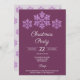 Gestalten Sie Ihre eigenen Designer Weihnachten-Party Einladungen mit diesem Imitat Glitzer Schneeflocke-Design in üppigem lila. Dieser weihnachtfarbene Trend ist lila und diese lila, reichen, dunklen Pflaume-Urlaubseinladungen werden die Stimmung Set, ob Ihr Weihnachtsdekor lila ist oder eine elegante Mischung aus Amethyst und Akzenten von Silber und aquamarin. Die Spitze dieses individuellen Einladungs-Designs beginnt mit einem Trio aus Imitaten, die lila Schneeflocken über "Weihnachten Party" in einem festlichen, weißen Skript-Schriftart ausstrahlen. Diese individuellen Weihnachtseinladungen sind vollständig anpassbar, sodass Sie Weihnachts-Party zu Feierabend wechseln können, wenn Sie gewollt haben - oder es an Silvester oder Geburtstag für die Winterfeiern bearbeiten, bei denen Schnee immer noch auftritt. Jede Textvorlage, in einer Mischung aus weißen Schriftart, ist leicht zu ändern, sodass Sie Ihre Urlaubsparty Details hinzufügen können und erstellen Sie Ihre personalisierte Weihnachtseinladung in lila Pflaumen und Imitats Glitzer Schneeflocken.