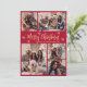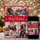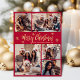 Elegant Modern Simple Calligraphy Red and Gold Snowflake 5 Foto Collage Frohe Weihnachts Script Holiday Card. Dieses festliche, minimalistische, fünf (5) Foto Feiertage Grußkarte Vorlage zeigt eine hübsche Gitter Foto Collage, etwas Schneeflocke und sagt "Frohe Weihnachten"! Der "Fröhliche Weihnachten"-Grußtext ist in einem handgeschriebenen Pinsel-Schriftart-Skript in Gold auf rotem Hintergrund geschrieben. Auf der Rückseite mit Ihrer Grußbotschaft Vorlage mit 3 kleinen Schneeflocken eine Fotovorlage. Niedliche Grußkarte für Ihre Familie und Freunde in der Weihnachtszeit.