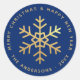 Snowflake Royal Blue Elegant Faux Gold Christmas Runder Aufkleber