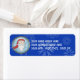 Rücksendeadressen-Aufkleber mit Weihnachtsgeschmack und blauem Hintergrund mit Schneeflocken und weißem Text, der leicht zu verändern ist.