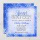 Ein Winterwunderland zum Thema 16 . Geburtstag Geburtstag Einladung. Die Imitat strahlen Akzente auf einem Schneeflockenhintergrund in königsblauen und weißen Farbtönen. Designs sind flache gedruckte Grafiken - NICHT AKTUELLER GLITZER.
