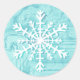 Schöner Umschlag Aufkleber im Aquamarine, abstrakter Hintergrund und eine große weiße Schneeflocke. Großartige Aufkleber für die Ferien. Verwenden Sie als Umschlag Aufkleber für Ihre Weihnachtskarten oder als dekorativer Aufkleber für Ihre Geschenke. Eleganter Weg, um Ihre Urlaubskorrespondenz zu beenden.