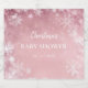 Suchen Sie ein elegantes Winterwunder-Label für die Babydusche, die eine Sektflasche schimmert? Schauen Sie nicht weiter. Dieses bezaubernde Label besticht durch Glitzer und Schneeflocken vor einer winterlich blütenrosa Kulisse.