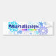 Das stützenautismusbewusstsein, unser "wir sind alle einzigartige" Entwürfe zur Verfügung stellen Symbole und das Verständnis von Autismus und von Leuten als einzigartige Einzelpersonen. Die Schneeflockeentwürfe heben die einzigartige Schönheit und die Fähigkeit der Alleute hervor.