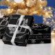 Snowflakes Candles Holly Black Silver Weihnachten Geschenkpapier