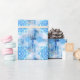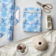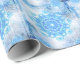 A lacy blue design reminiscent of snowflakes in a frosty window.