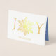Eine schöne, einfache, aber elegante Gold Foil Holiday Greetings Card mit dem Wort Joy and Snowflakes. Sie können sie mit Ihrer eigenen Nachricht aus dem Menü Personalisieren personalisieren personalisieren und die Schriftart aus dem Menü Weitere anpassen. Weiße Schneeflocken auf der Innenseite der Karte in einer blauen Hintergrundfarbe. Sie können mich für jede Hilfe kontaktieren. Originelles Design von SunFreStar.