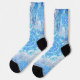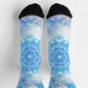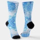 A lacy blue design reminiscent of snowflakes in a frosty window.