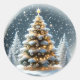 Snowglobe mit Weihnachtsbaum im Schnee Runder Aufkleber