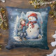 Snowman and Boy with Scarves Starry Night Monogram Kissen