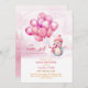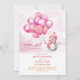 Winterthema. Rosa Wasserfarbe. Ein schöner Schneemann mit rosa Kleidung mit einem Haufen rosa Ballons.