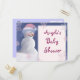 Niedlicher Schneemann mit rosa Hut und rosa und blaue Schneeflocken mit Baby Shower Text. Umsteigen Sie einfach vor und zurück für Ihr perfektes Wintermassage Baby Dusche. Sehen Sie Tausende von Baby-, Monogramm- und Einladungskarten Briefmarke und -karten.