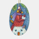 SNOWMAN BODYGUARD, CHRISTMAS KARDINAL REDBIRD KERAMIK ORNAMENT