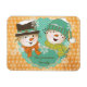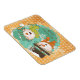 Unser Snowman personalisierter Flexi-Magnet bietet Snowmannpaar im Top-Hut, Winterhut, gestreiftem Schal und Karottennasen auf einem orangefarbenen Schneeflocken-Hintergrund, kleine Polka-Punkte auf aquamarin mit weißen Schneeflocken und ein aquamarines Banner, das Sie leicht mit einem Namen personalisieren können!