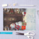 Dies ist ein bezauberndes Weihnachtspapier mit einer Weihnachtslandschaft eines Schneemanns mit Geschenken an der Haustür eines Hauses in einem Vintagen Aquarellstil. Dieses Papiertaschentuch kann als Geschenktüte, als Geschenkboxen-Füllstoff oder für ein Weihnachtsdecoupage-Projekt verwendet werden.