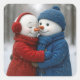 Snowman Couple Hugging in Winter Forest Quadratischer Aufkleber