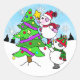 Feierlicher whimsical Urlaub Snowman Couple Stern auf Weihnachten Tree Classic Round Stickers setzen.