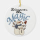 Snowman bewahrt Ferien-Ornament mit Text, der lautet "Entdecken Sie die Magie"!